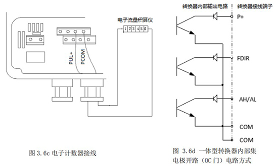 頻率(脈沖)、上下限報(bào)警、流向標(biāo)示等輸出均為集電極開(kāi)路的電平輸出信號(hào)。