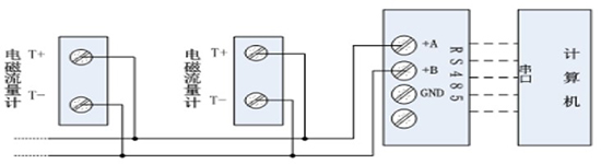 手操器與電磁式流量計(jì)連接如下圖所示:
