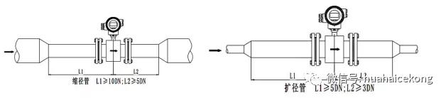 (1)上、下游工藝管的內(nèi)徑與流量計(jì)的內(nèi)徑應(yīng)滿足:0.98DN≤D≤1.05DN(DN:流量計(jì)內(nèi)徑;D:工藝管內(nèi)徑)