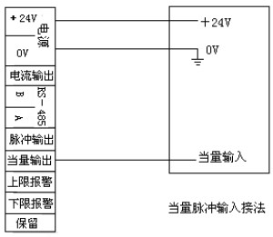純水流量計脈沖輸出型:工作電壓:+12VDC或+24VDC兩種(客戶定貨前必須選定一種供電電源)。信號傳輸距離:小于250米。輸出信號:方波信號幅值:+12VDC供電幅值大約為10V+24VDC供電幅值大約為20V.安裝:放大器和渦輪流量傳感器連接為M16×1.5螺紋,渦輪流量傳感器安裝完后,把放大器擰到渦輪流量傳感器上,用手擰到感覺放大器到底后再把鎖緊螺母帶緊。接線:脈沖輸出型放大器對外引線為三根,紅線、白線和屏蔽。紅線接正電源,白線為脈沖輸出和其它顯示儀或設備連接,屏蔽接地。